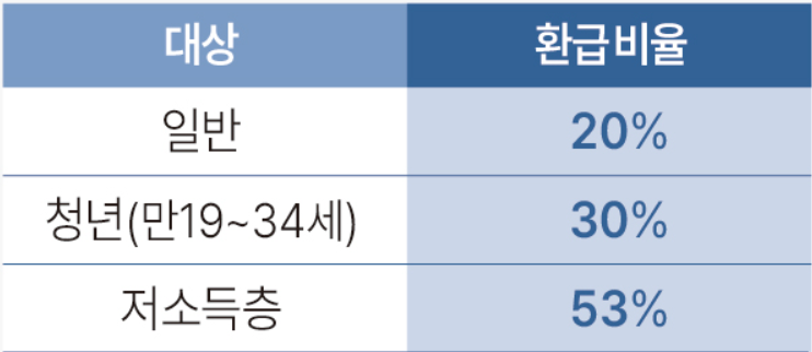 20~53%까지 환급을 받으실 수 있습니다.